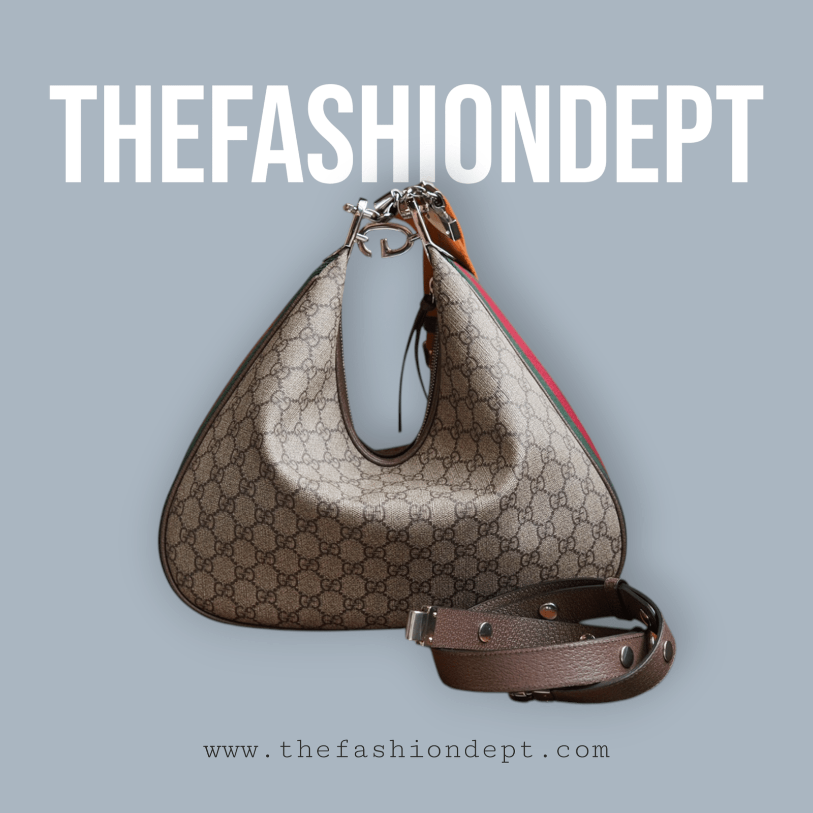 Refined with heritage flair, the Attache Shoulder Bag blends Gucci’s timeless Web trim and crescent silhouette with modern utility. Designed with a striking G-hook flap and zip closure, it includes both a bold Web-trimmed strap and an optional leather strap for versatile styling. Inside, enjoy a practical zip pocket and soft cotton-linen lining. Ideal for everyday essentials with a touch of Gucci edge