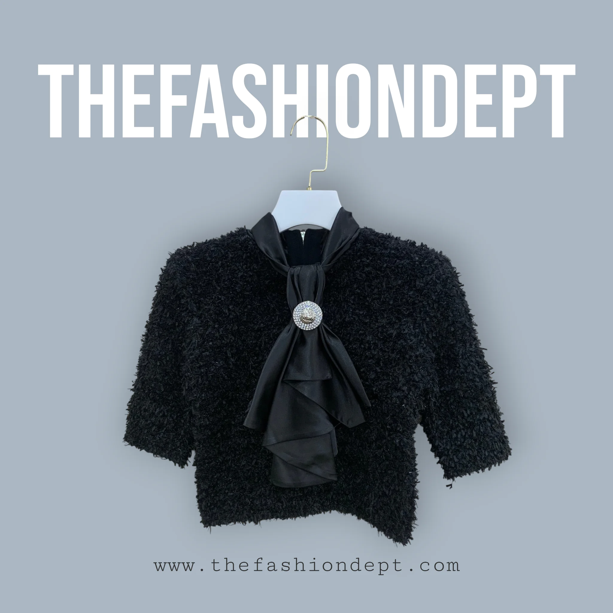 The Balmain Black Silk Ascot Collar Top is a luxurious and elegant wardrobe essential that effortlessly blends refined sophistication with timeless Parisian style. Crafted from premium silk, this top features an elegant ascot collar that enhances its fluid, feminine silhouette. Subtle signature Balmain details elevate the design, creating a polished, couture-inspired finish. Perfect for both daytime elegance and evening refinement, this piece pairs seamlessly with tailored trousers, skirts, or statement outerwear, embodying modern femininity with classic allure.