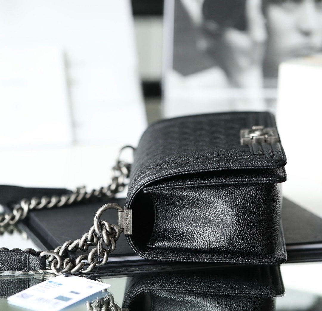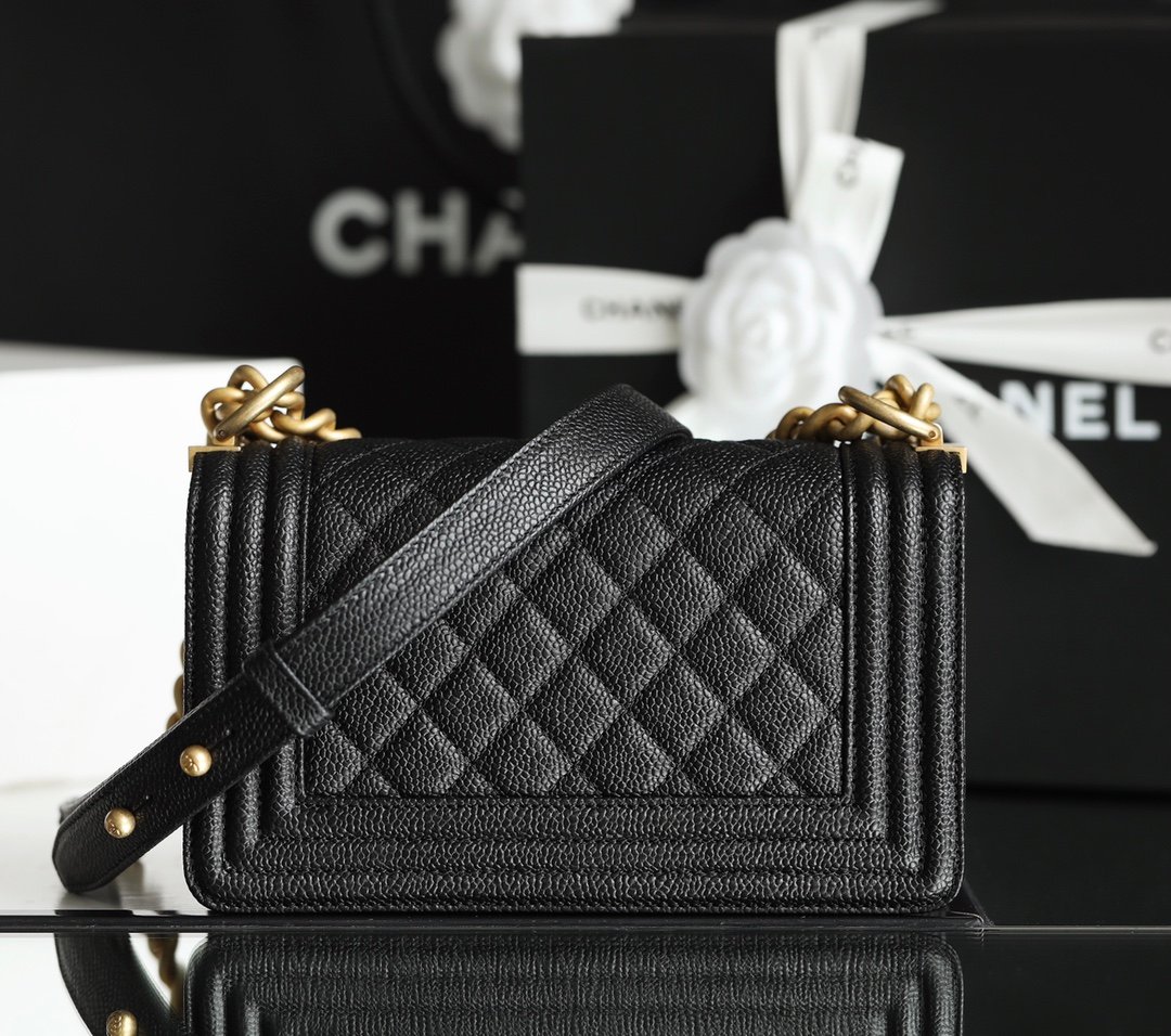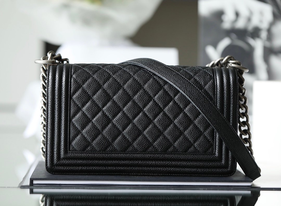 A bold icon of modern luxury. The Boy Bag features Chanel’s signature structured silhouette, bold lines, and the iconic ‘Boy’ clasp.