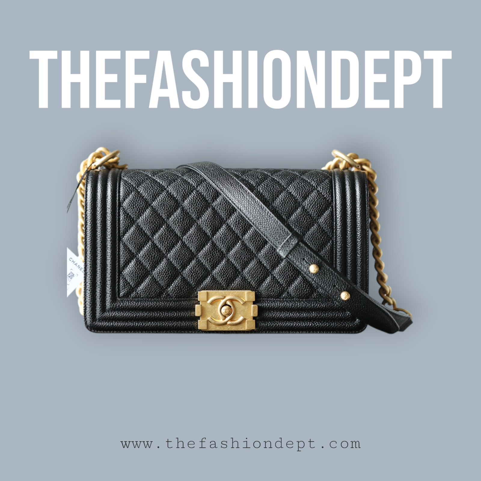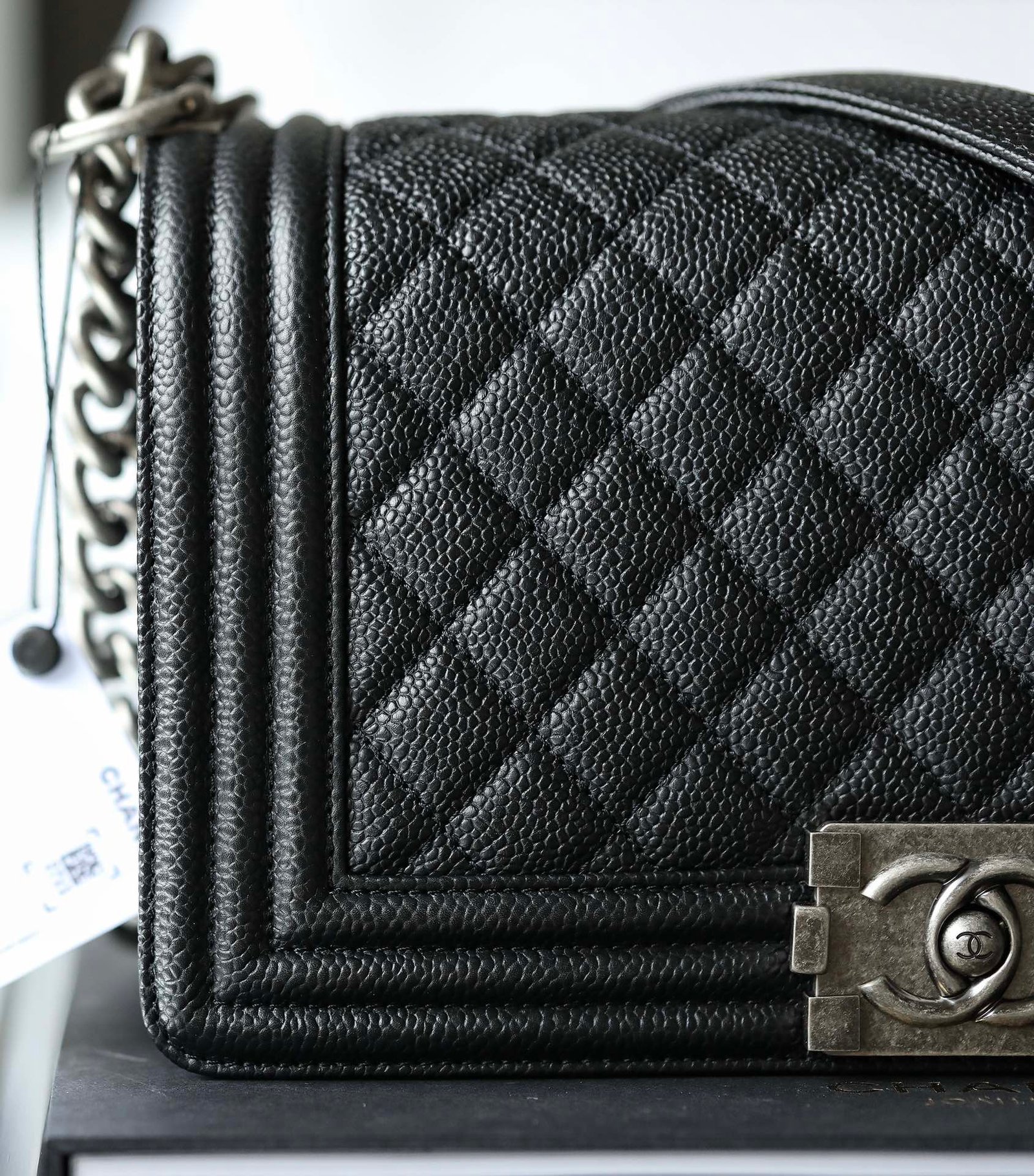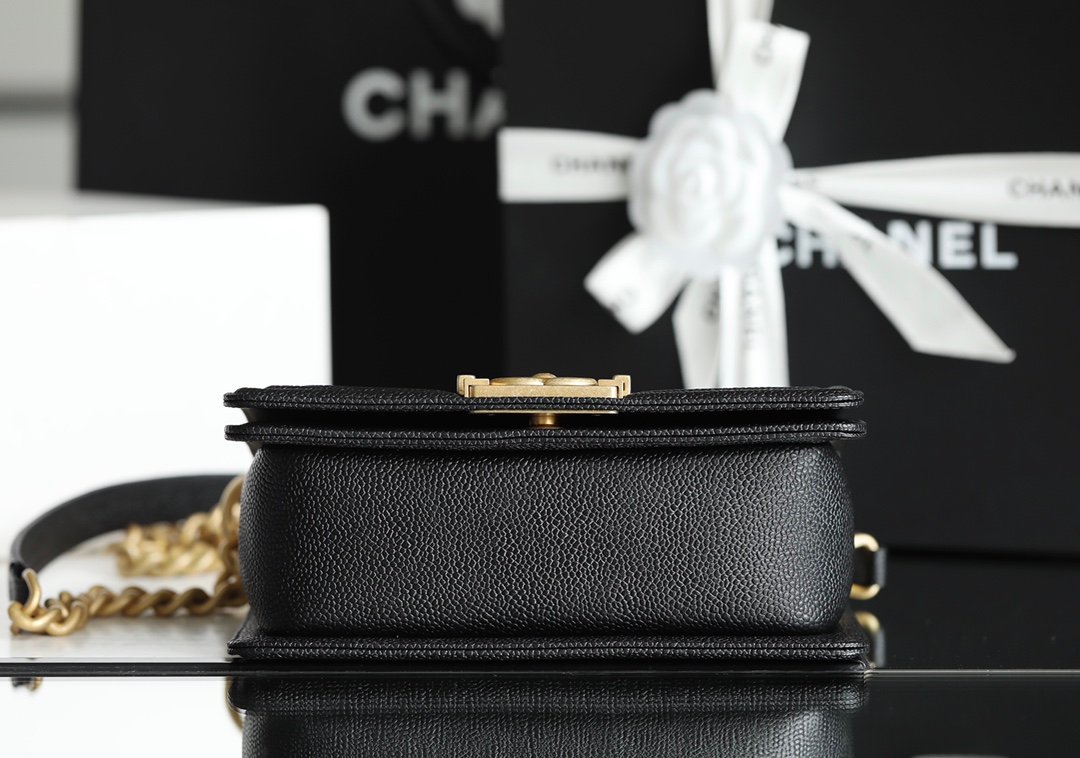 A bold icon of modern luxury. The Boy Bag features Chanel’s signature structured silhouette, bold lines, and the iconic ‘Boy’ clasp.