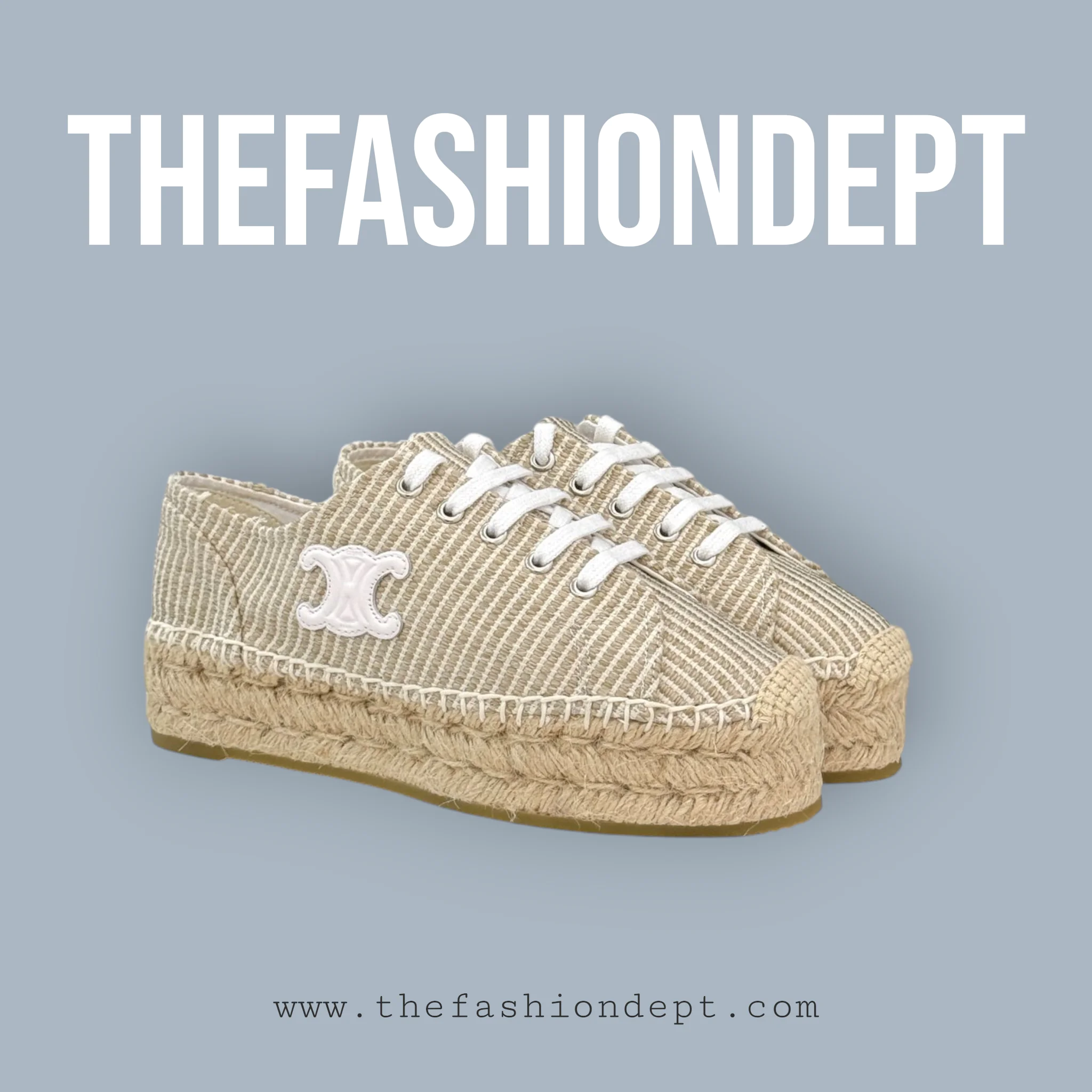 The traditional braided jute sole delivers a relaxed, summery feel, enhanced by a durable rubber outsole for modern wearability. Subtle CELINE branding keeps the look polished and understated, while the lightweight construction makes it ideal for everyday comfort.