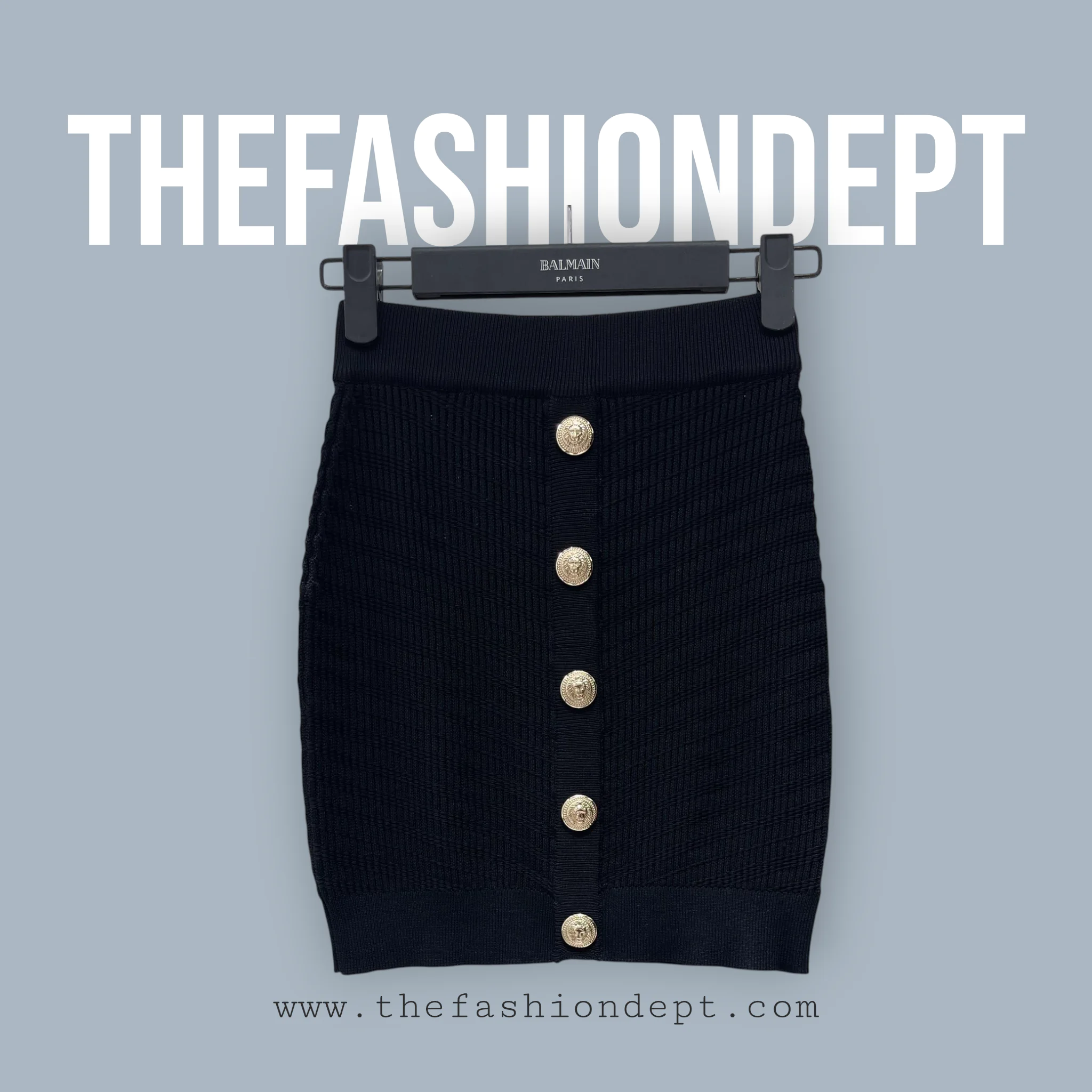 The Balmain Knit Skirt is a refined and chic wardrobe essential that showcases Balmain’s signature blend of Parisian elegance and couture craftsmanship. Made from a luxurious wool-blend knit fabric, this skirt offers both comfort and style, with a flattering, form-hugging silhouette. The rich black hue provides a versatile base, while the structured ribbed knit texture enhances the skirt’s sophistication. The gold-tone buttons on the front offer a distinctive Balmain touch, elevating the skirt to a statement piece perfect for both casual and formal occasions. Pair it with the matching top or a blouse to create an effortlessly chic ensemble. Made in Italy, it epitomizes high-end craftsmanship and timeless style.
