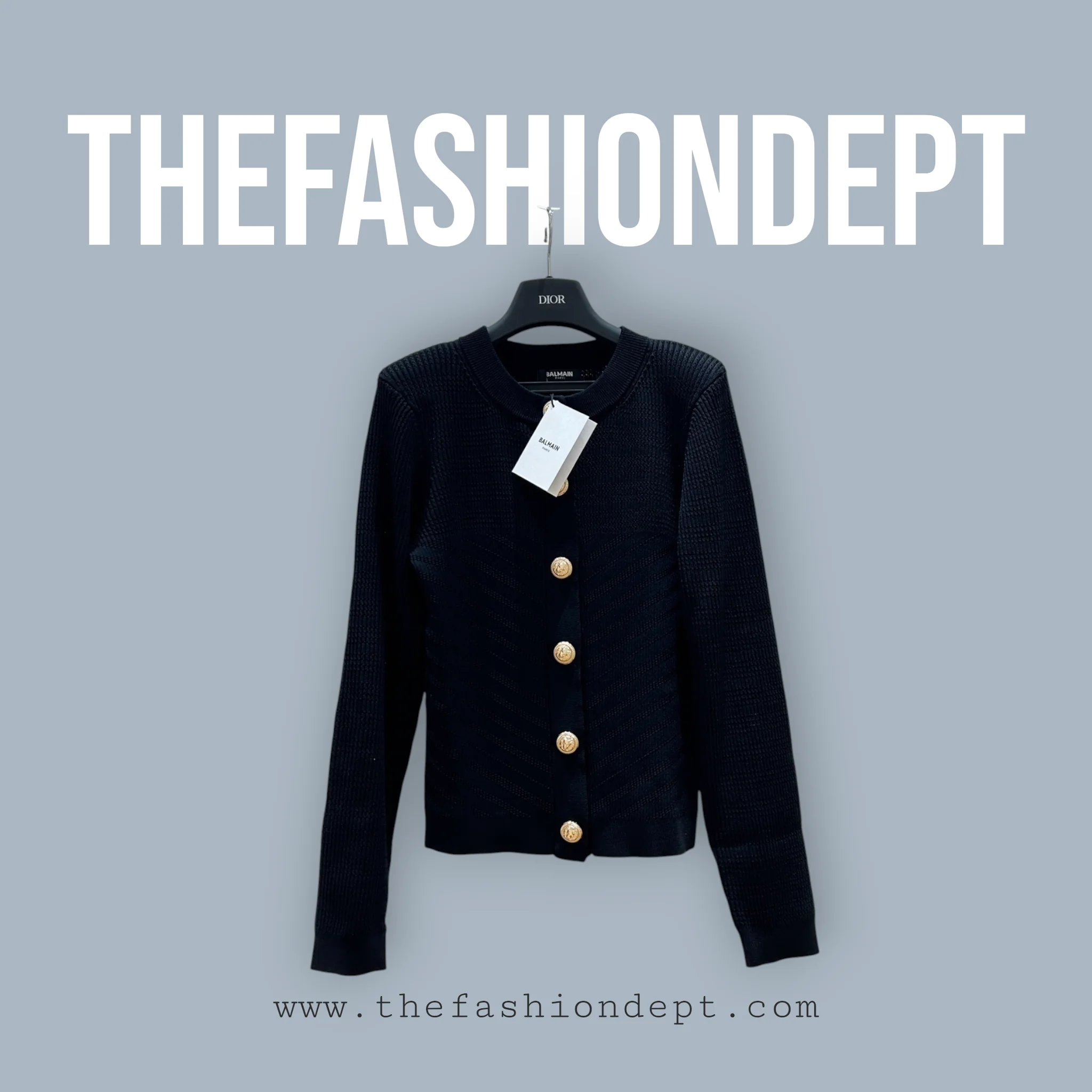 The Balmain Long Sleeve Knit Cardigan is a luxurious and sophisticated piece that epitomizes Balmain’s commitment to high-end craftsmanship and timeless Parisian style. Crafted from a rich wool blend, this cardigan features a classic open-front design with ribbed knit detailing for added texture. The contrast-colored trims and signature gold-tone buttons make a bold yet refined statement, perfect for adding an elevated touch to both casual and more formal outfits. This versatile long-sleeve cardigan is a perfect layering piece that will seamlessly complement your wardrobe for any occasion. Made in Italy, it reflects the precision and artistry of Balmain’s tailoring.