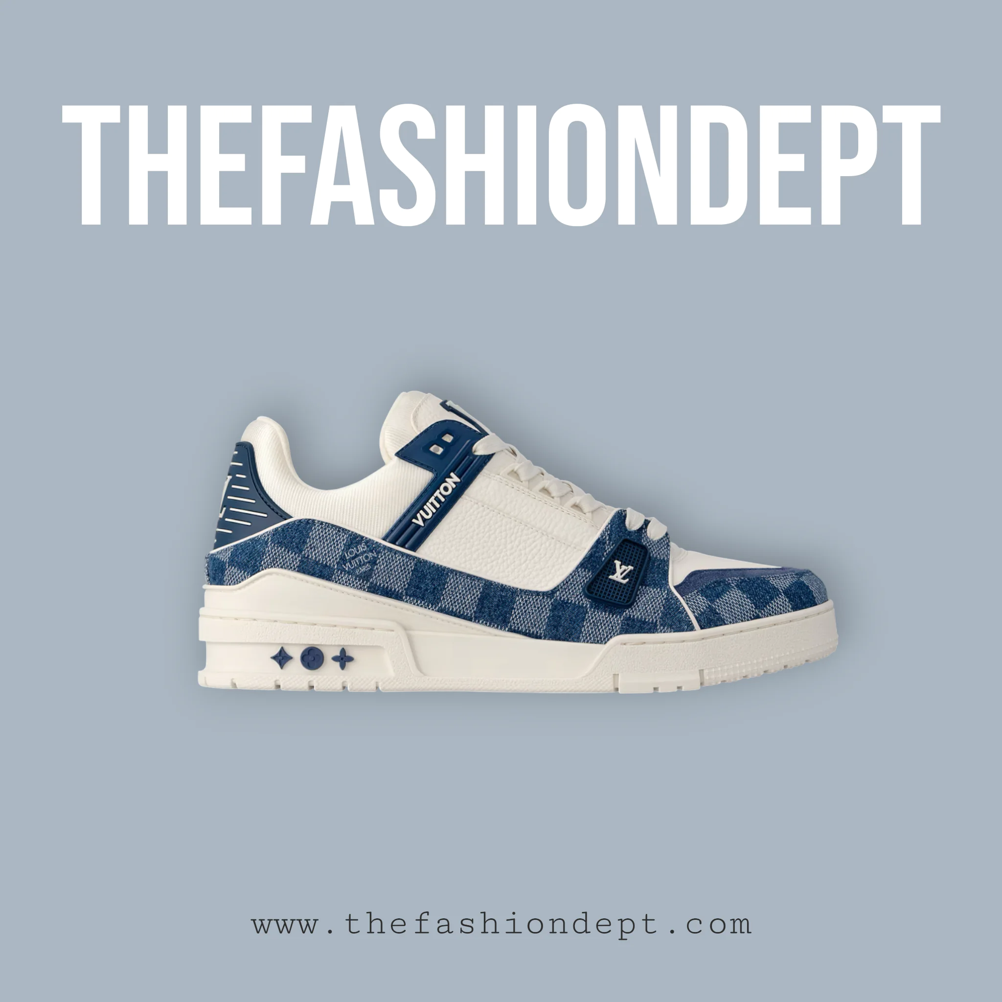 The Louis Vuitton LV Trainer – Damier Denim & Calfskin Edition blends premium materials with the iconic LV Trainer silhouette. Crafted from Damier denim and smooth calfskin, this edition highlights the meticulous design of the upper. Originally created by Virgil Abloh, it features signature rubber details and a technical rubber sole for style, comfort, and performance.