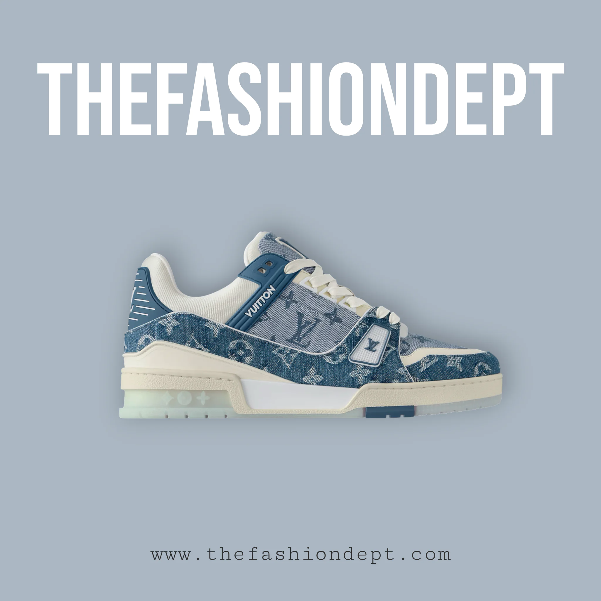 The Louis Vuitton LV Trainer – Bicolor Monogram Denim Edition merges vintage basketball inspiration with contemporary luxury. Crafted from two shades of Monogram denim, this tonal sneaker features bicolor laces, a technical rubber sole adorned with Monogram flowers, and signature rubber details including the LV Initials logo, paying homage to Virgil Abloh’s original design.
