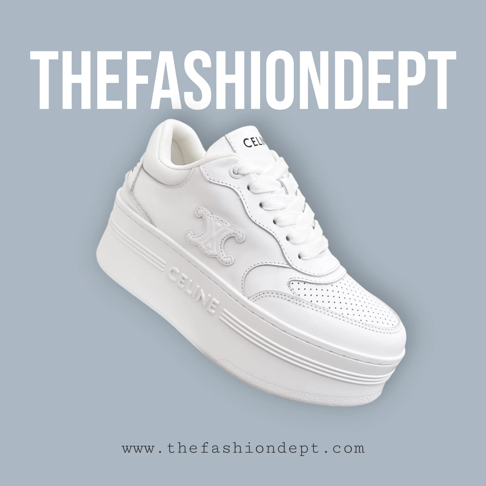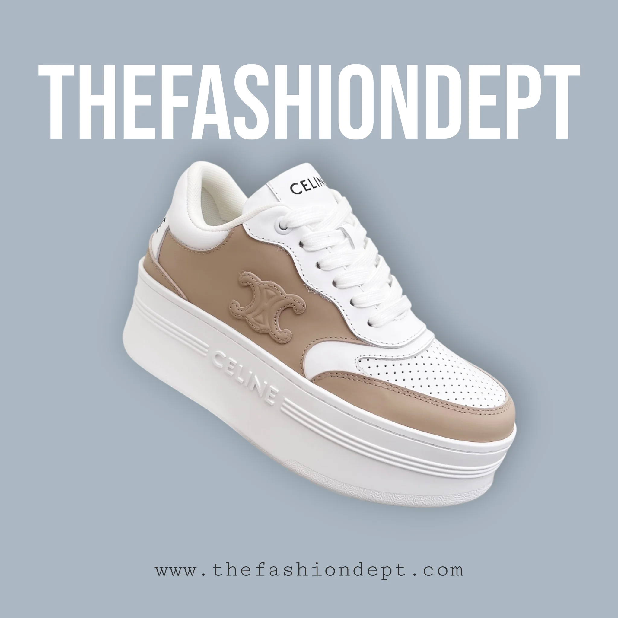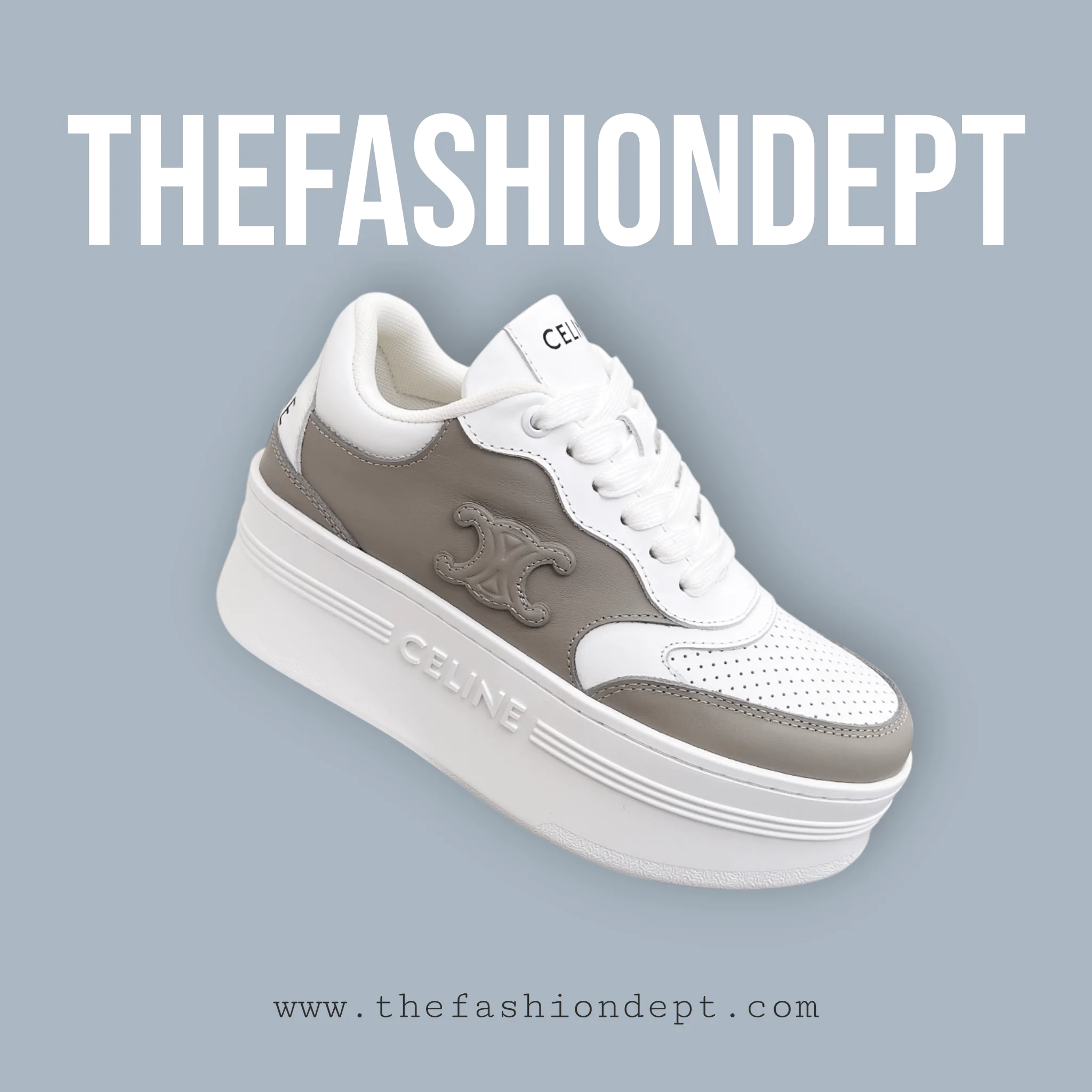 The CELINE Triomphe Thick Calfskin Sneaker elevates contemporary streetwear with its oversized, sculptural silhouette and meticulous craftsmanship. Made from smooth calfskin leather, the sneaker features layered panels, tonal laces, and discreet CELINE logo detailing for a minimalist yet striking aesthetic.
